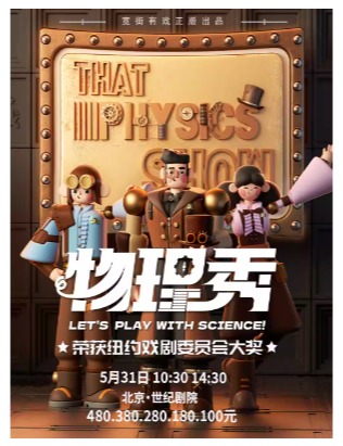 百老汇正版授权互动科学剧《物理秀》时间:2026.05.31 周日场馆:北京市 | 世纪剧院票价:180/280/380/480微信订票:18515362586电话订票:010-66552100,010-66552258