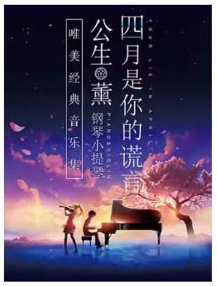 《四月是你的谎言》 ——“公生”与“薰”的钢琴小提琴唯美经典音乐集时间:2026.04.25 周六 19:30场馆:北京市 | 世纪剧院-小剧场票价:180/280/380微信订票:18515362586电话订票:010-66552100,010-66552258